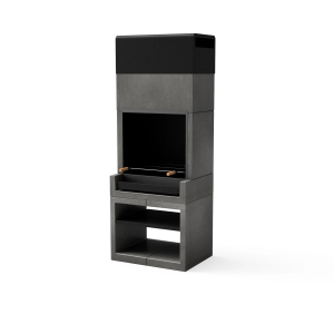 Vorgefertigter Betongrill der KITAWAY-Serie aus Beton und Stahl für Holzkohle oder Brennholz. Maße 84 x 63 x 223 cm, Grillrost 69 x 41,5 cm, kompatibel mit weiteren KITAWAY-Modulen. Mehr erfahren