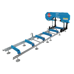Mobile Blockbandsäge Leman SAG400 mit 2200 W Motor und bis zu 400 mm Stammdurchmesser für präzises Schneiden von Holz im Außenbereich. Mehr erfahren