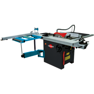 Tischkreissäge Leman LOSST315 mit Schiebeschlitten und 315 mm Sägeblatt für präzise Längs- und Winkelschnitte im professionellen Einsatz. Mehr erfahren